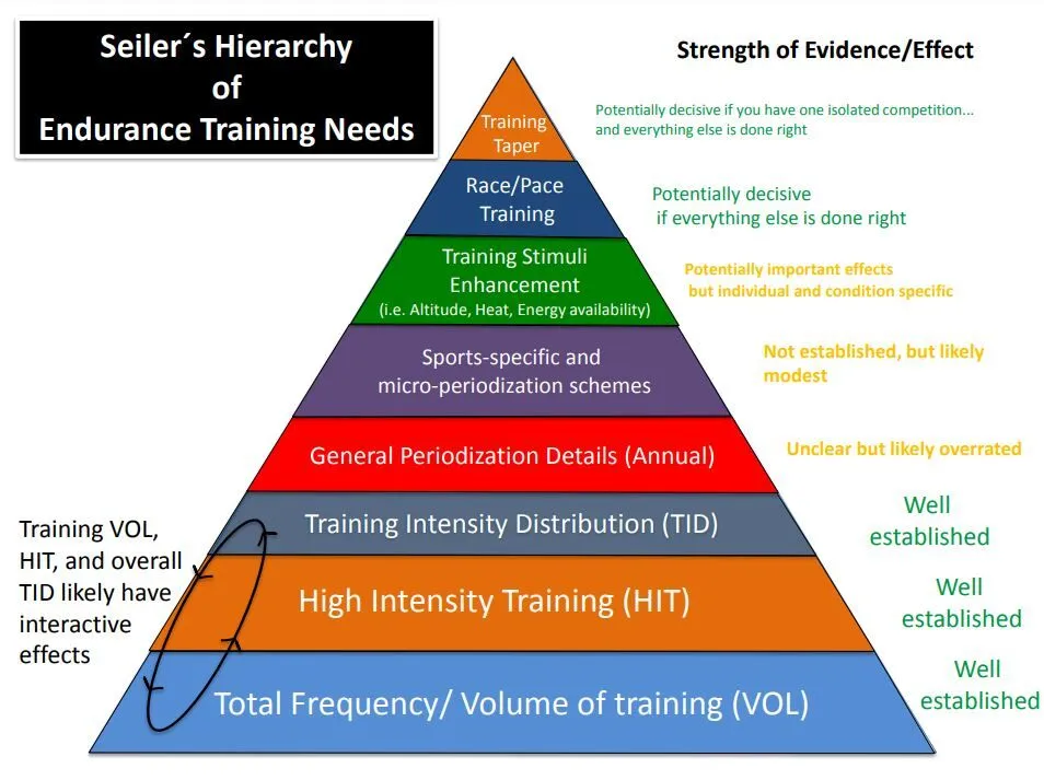 Seiler also came up with a Maslow-esque hierarchy of endurance-training needs.
