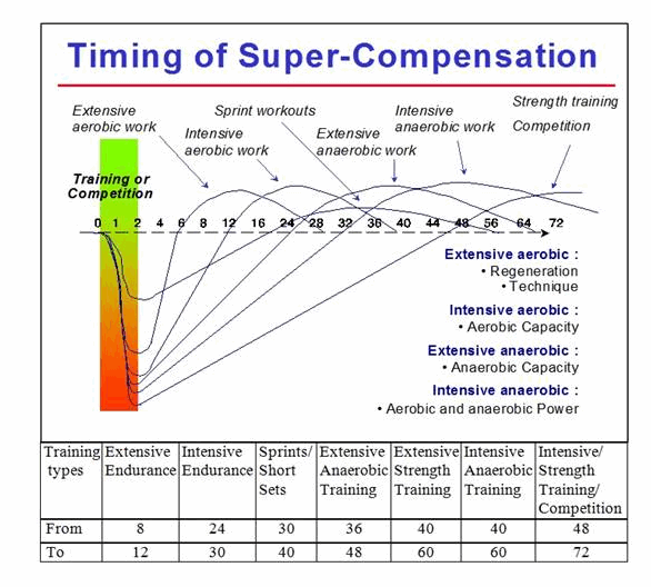 Of course within each of those categories you might Touch, Train, or Tax those systems. If you just do 2 dive 25s (likely a Touch), you don't need 30-40 hours of rest to supercompensate. But if you did 12k of extensive endurance, you've likely Taxed their body and would probably need more than 12 hours to bounce back. For anyone that disagrees with me - go swim your 12k, then we can chat.