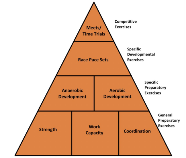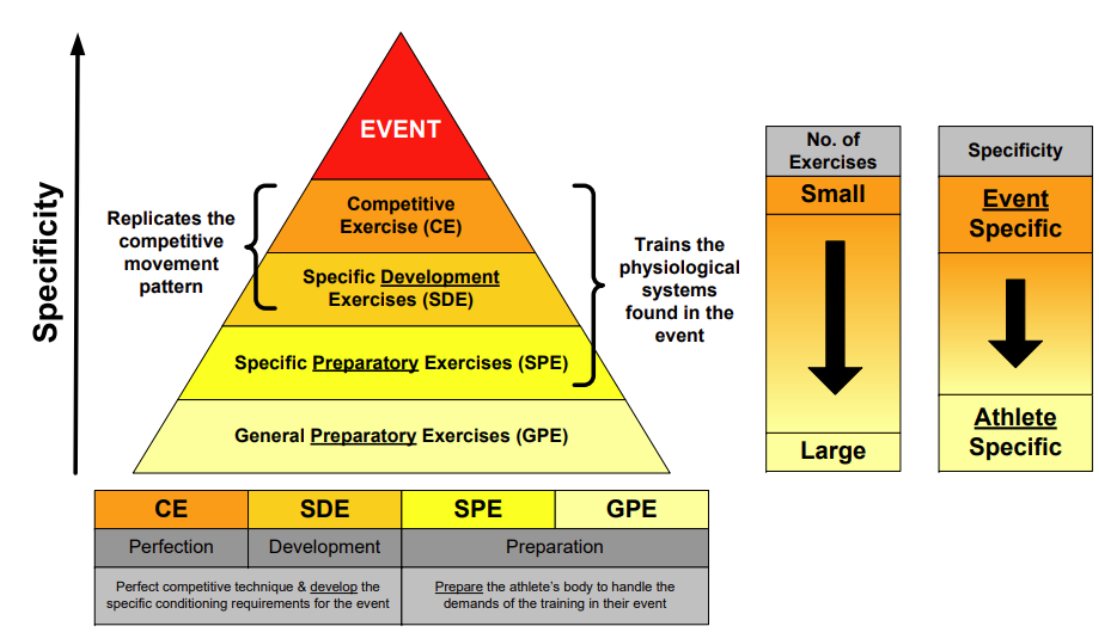 These ideas all give rise to the Bondarchuk pyramid, a progression of work from general and preparatory to developmental and specific:
