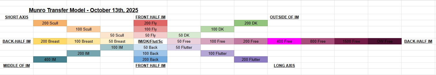 Enter the Munro Transfer Model, which I came up with in October 2025. This is a way to relate and connect each of the strokes, as well as different types of training.